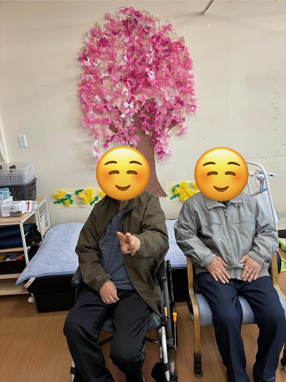 「これ、この前ねじってたやつか!」「綺麗〜」と桜の前で立ち止まりお花見をされるご利用者様もおられました